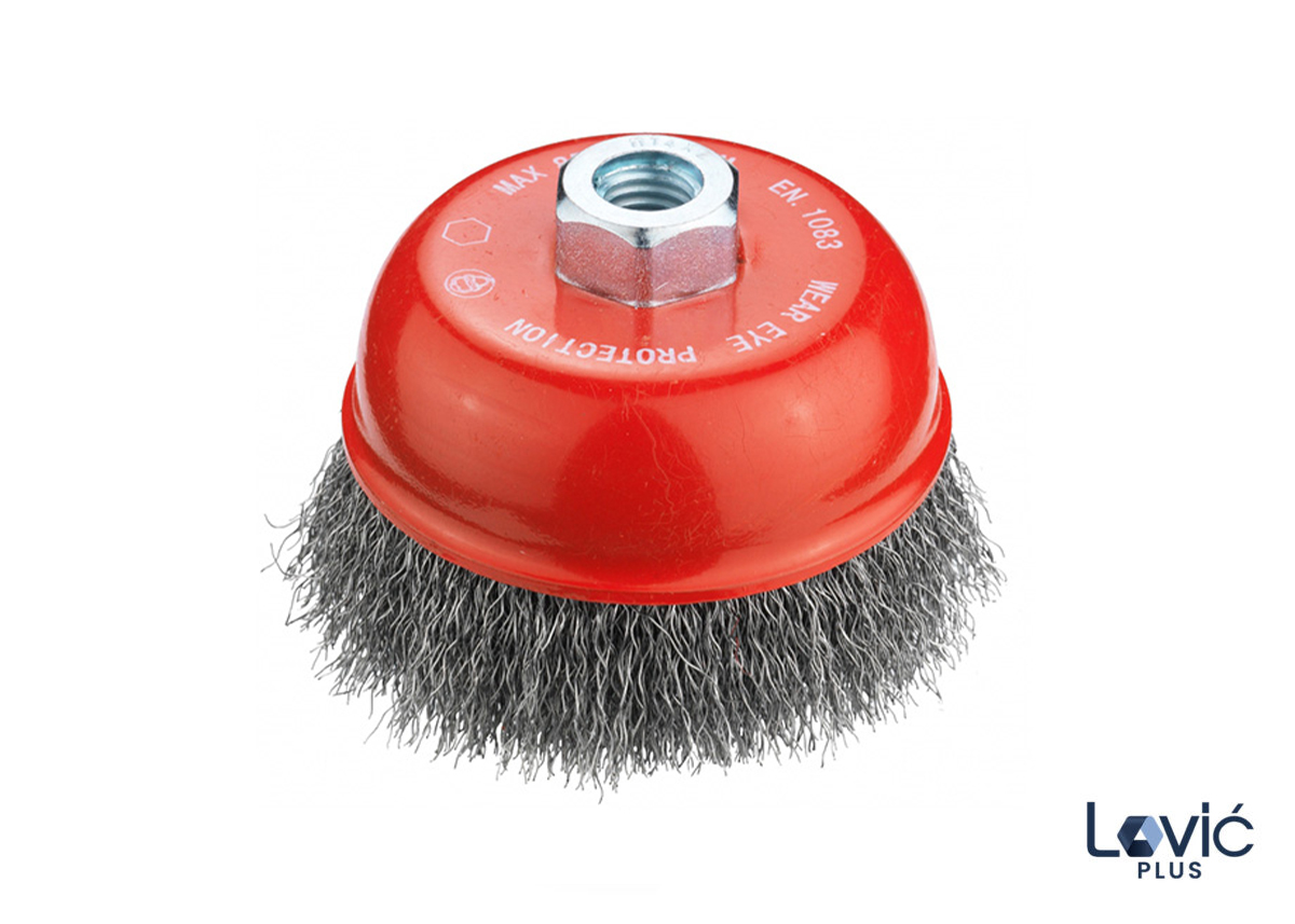 Kupasta upletena četka sa čeličnom žicom za upotrebu sa kutnim brusilicama.