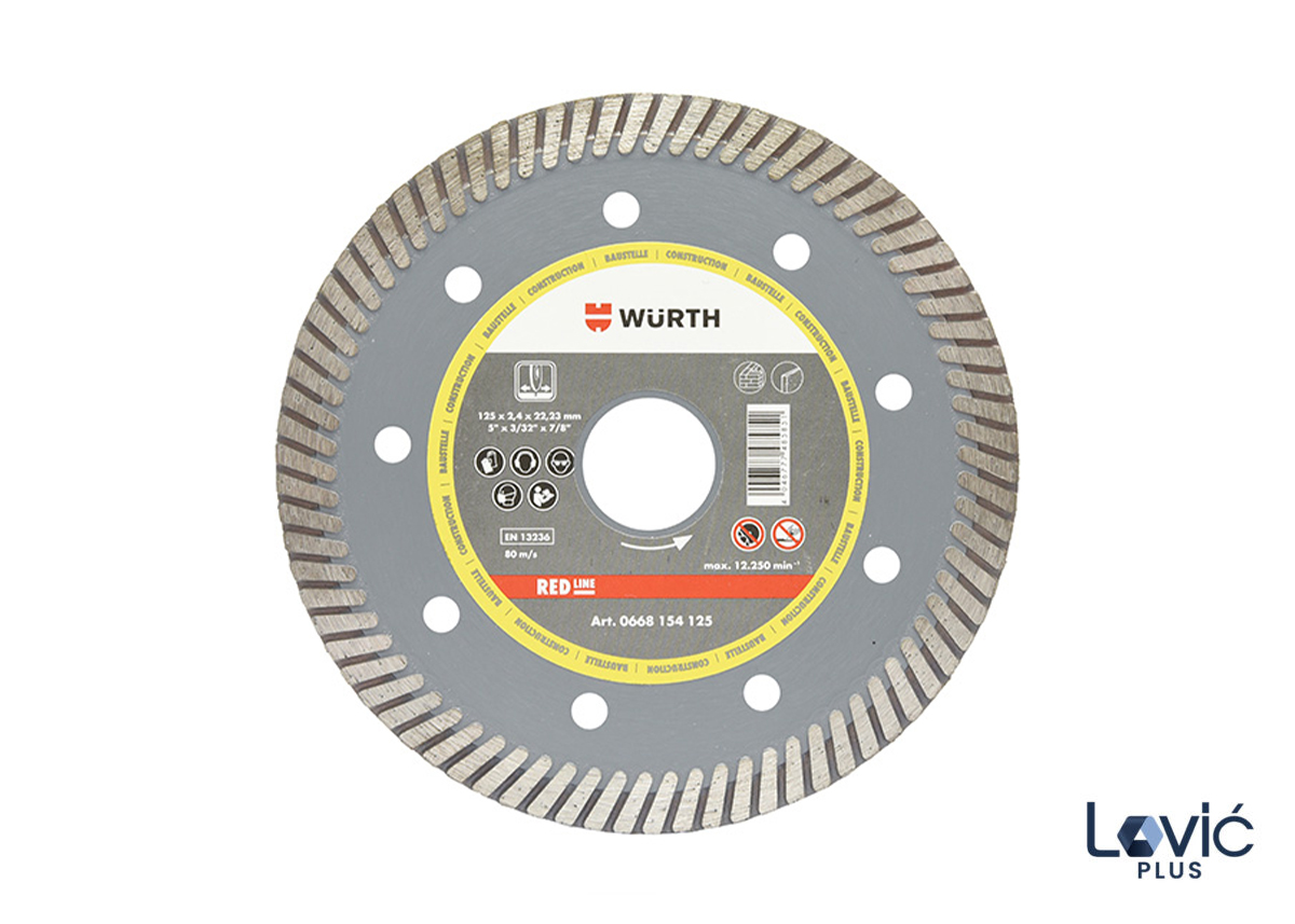 Standardna RED LINE Turbo dijamantna rezna ploča za upotrebu na gradilištima, za obradu raznih građevinskih materijala.